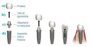 Durante l'intervento di implantologia, vengono inserite delle viti in titanio (note come fixtures) nell’osso del paziente. Queste viti funzionano come radici artificiali, su cui viene successivamente montata la corona artificiale. L’impianto deve essere lasciato all’interno dell’osso e della gengiva per un periodo di tempo sufficiente a permettere la cosiddetta osteointegrazione.